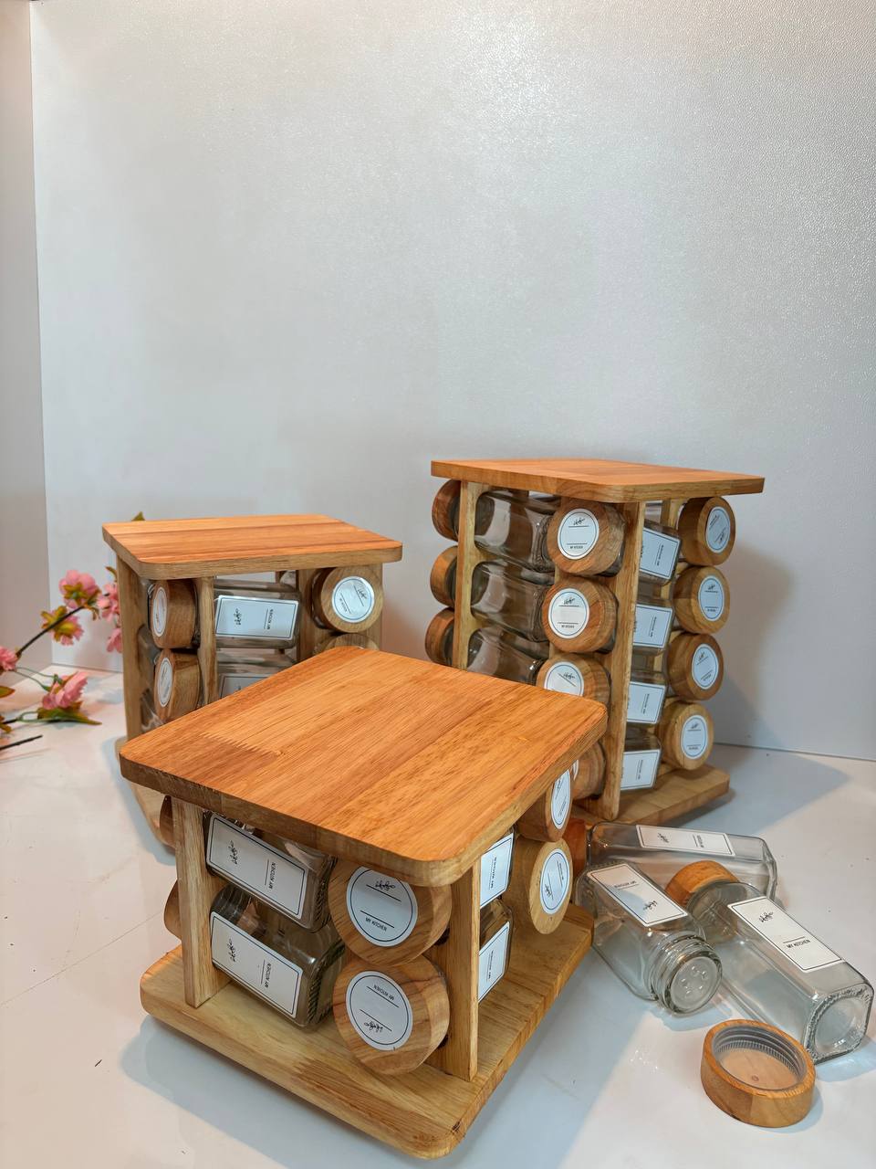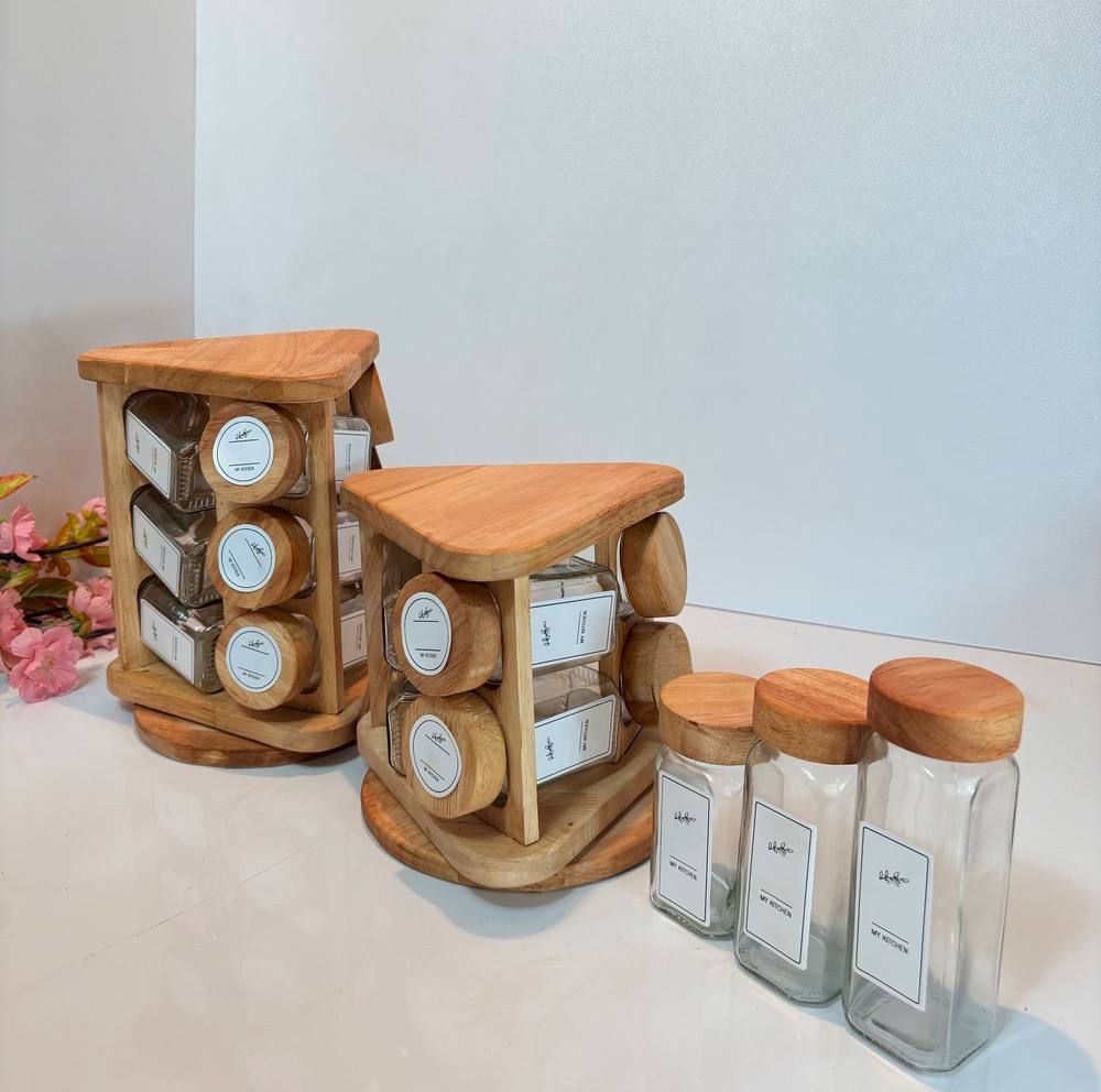 جا ادویه مک کارتی با استند چوبی و بانکه 12 سانت با درب چوبی و فلزی