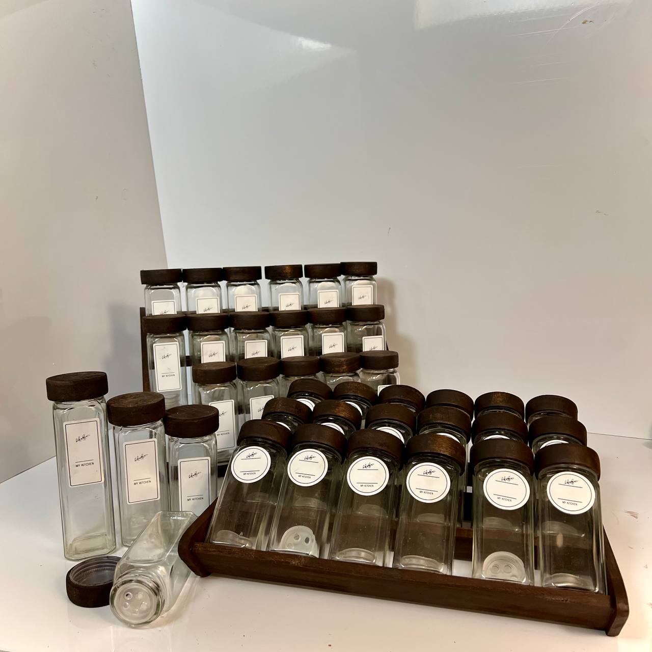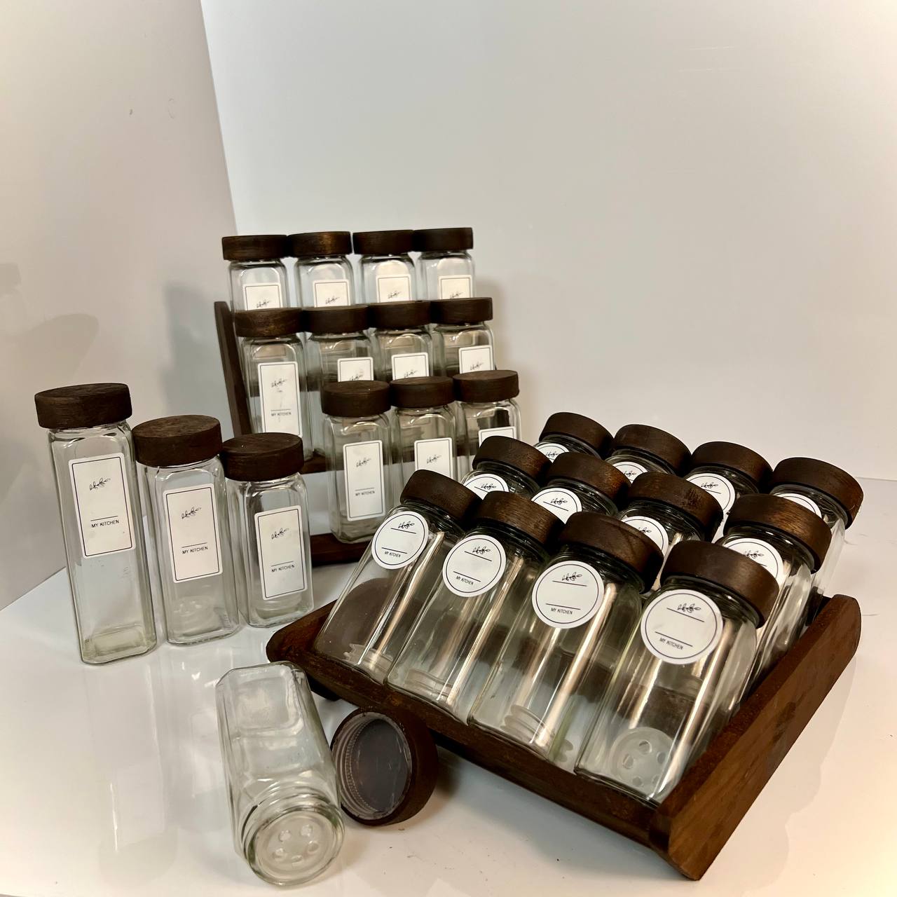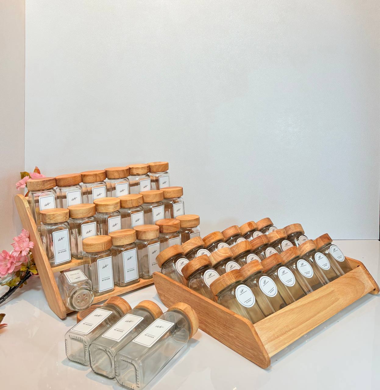 ست بانکه های ادویه چوبی 18 و 12عددی به همراه استند و 4 مدل لیبل نام ادویه ها در نمکپاشی بانکه ها روی استند به چهار صورت قرار میگیرن که هم روی اپن و هم داخل کشو قابل استفادس ارتفاع هر بانکه 12 cm / طول استند 33 cm / عرض استند 30 cm میباشد .
