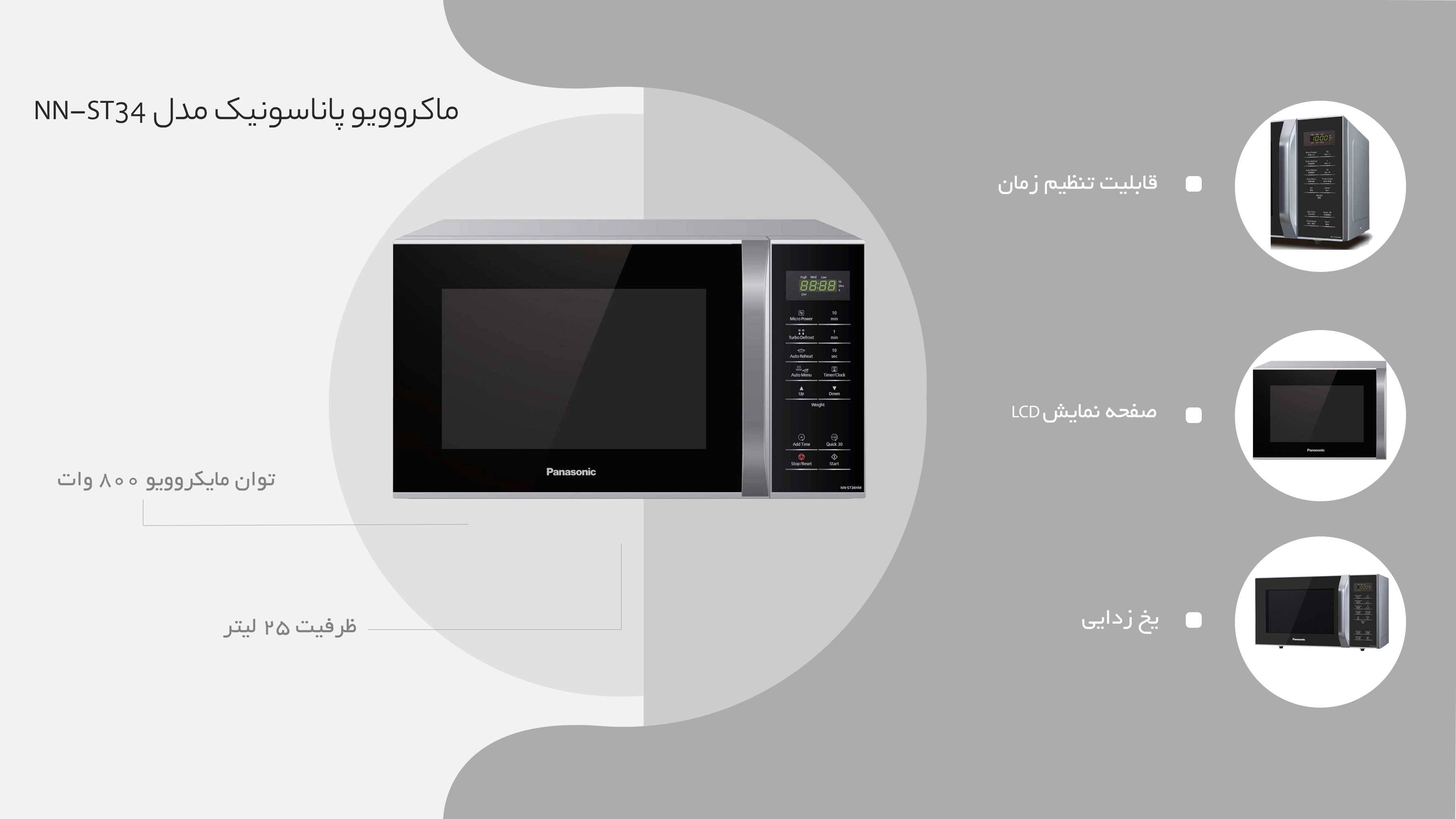 دستهبندی: لوارزم خانگی برقیپهنا: ۴۸۵ میلیمترعمق: ۴۰۰ میلیمترارتفاع: ۲۸۷ میلیمترظرفیت: ۲۵ لیتروزن : 15 کیلوگرمتوان مصرفی مایکروویو : ۸۰۰توضیحات صفحه نمایش : LCDدستگاه نمایش وضعیت : صفحه نمایشقطر صفحه چرخان : ۲۸۸نمایش بیشتر